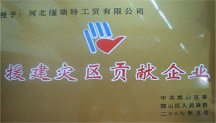 2008年獲“援建災區貢獻企業”稱號